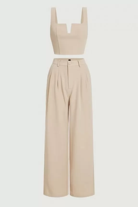 Set of 3:- Tie Crop Cami Top with Shirt & Pants Set Outfits